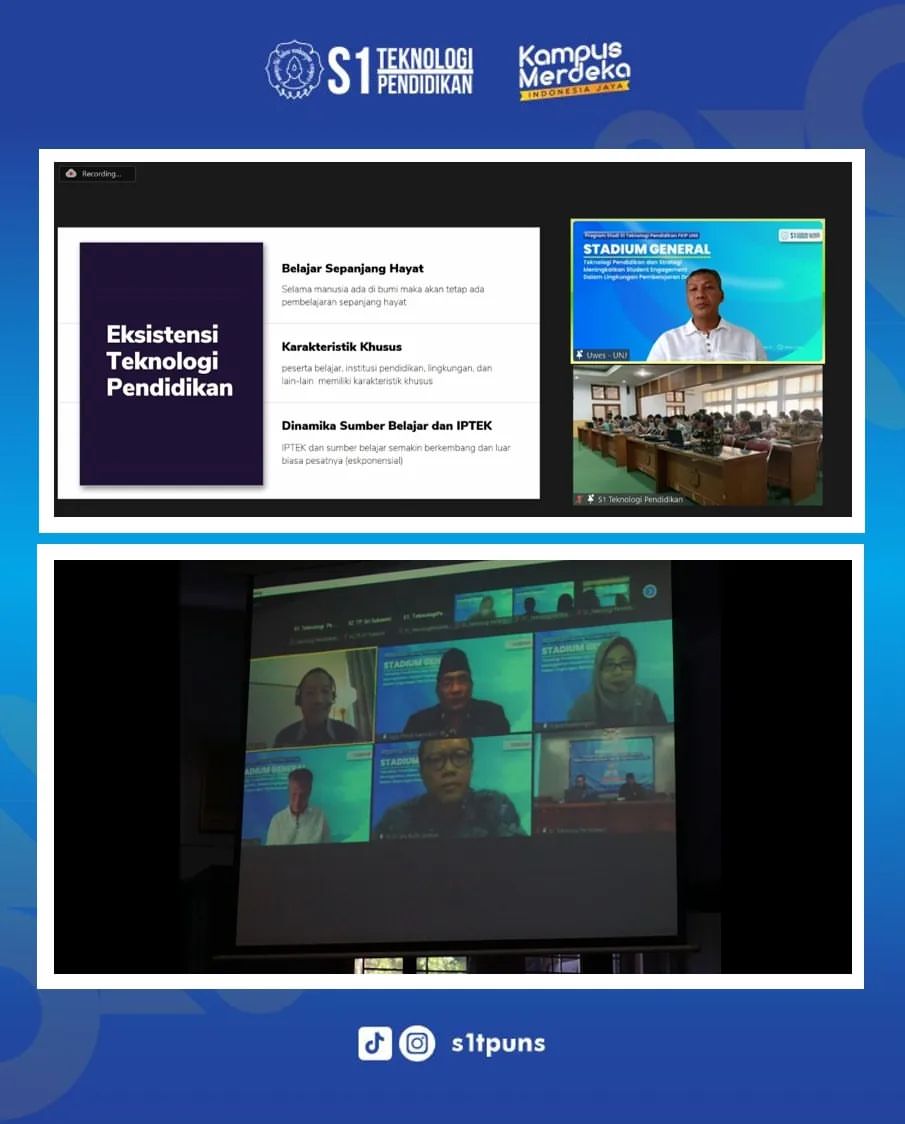 Program Studi S1 teknologi Pendidikan telah menyelenggarakan kegiatan Stadium General dengan Tema ‘Teknologi Pendidikan dan Strategi Meningkatkan Student Engagement dalam Lingkungan Pembelajaran Daring’