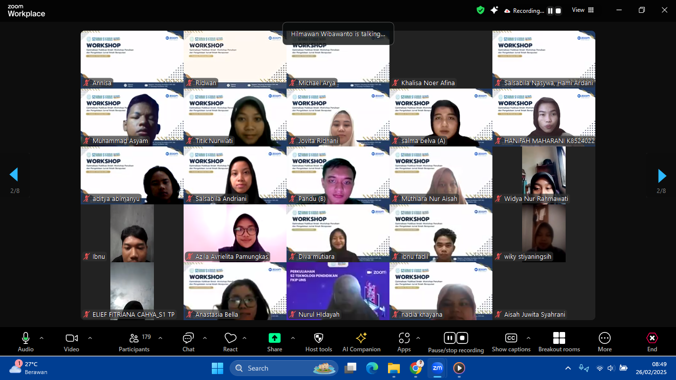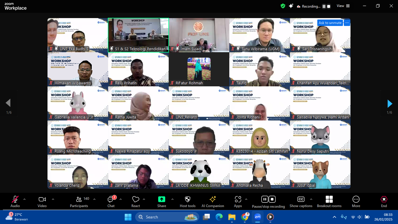 S1 FKIP UNS – Program Studi S1 Teknologi Pendidikan (S1TP) Fakultas Keguruan dan Ilmu Pendidikan (FKIP) Universitas Sebelas Maret (UNS) sukses menyelenggarakan Workshop Optimalisasi Publikasi Ilmiah: Penulisan dan Pengelolaan Jurnal Ilmiah Bereputasi pada Rabu, 26 Februari 2025. Workshop ini diadakan secara daring melalui Zoom Meeting dan dihadiri oleh dosen serta mahasiswa dari program S1 dan S2 Teknologi Pendidikan, serta mahasiswa dari program studi lain di FKIP UNS.